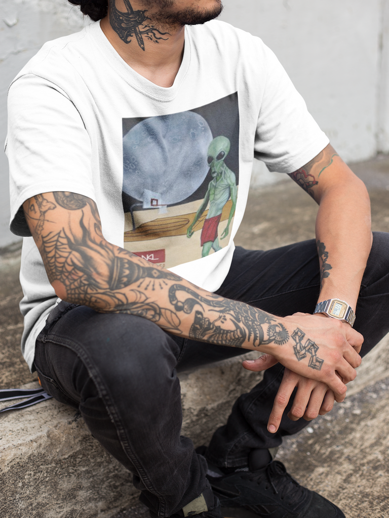 Break the rules of the game with the Alien Hoops T-Shirt—a premium heavyweight tee built for ballers who bring cosmic energy to the streets. Made from 100% combed ring-spun cotton, this tee delivers durability and softness with a structured, laid-back fit. Whether you’re layering it with a flannel or rocking it solo, this piece keeps your style effortless. The hand-painted cosmic graphic hits different, giving you a look that’s as bold as your game.
